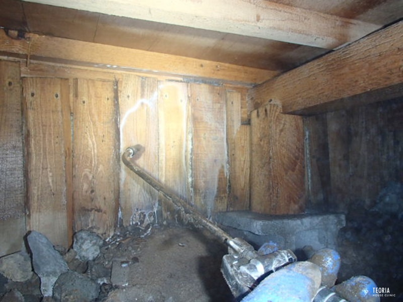 木部処理後は土壌処理を実施します。こちらはシロアリ専用の薬剤を土壌全面に散布します。土の中からシロアリが登ってこないようにバリア層を土壌の表面に形成してシロアリの被害を防止します。床下作業は以上で完了です。