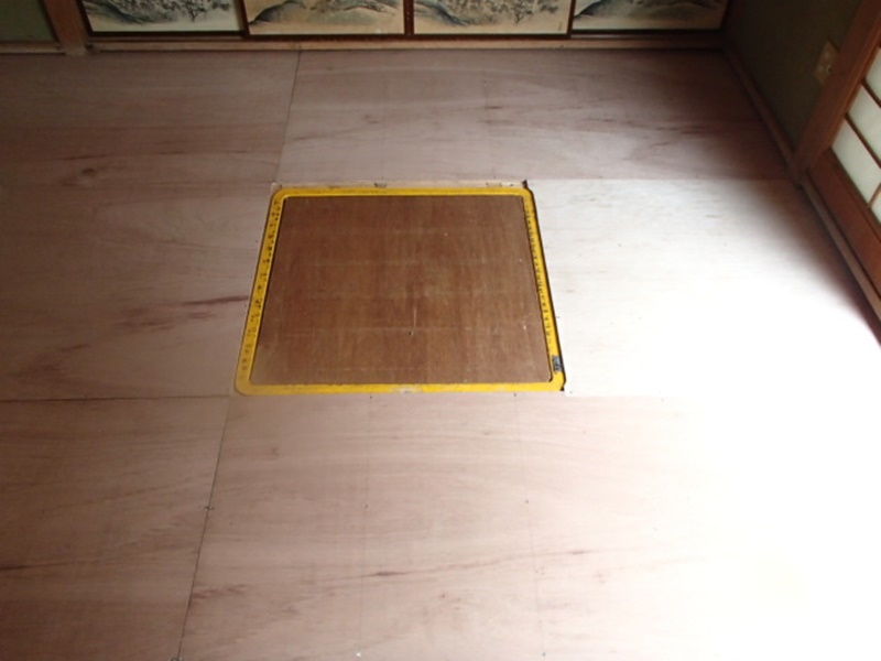 こちらが床板の張替え後です。フカフカな状態だった床をこの様に修繕させていただきました。このあとは畳屋さんから畳が入れられるとのことでした。
