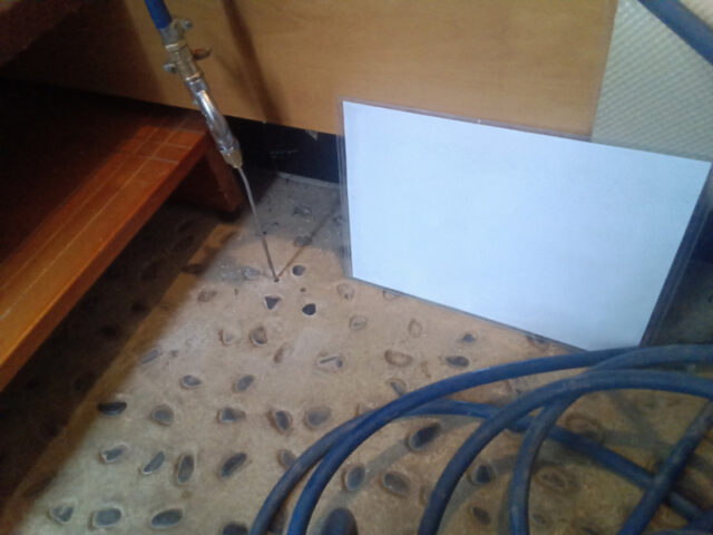 シロアリ被害のある木材は、表面上は小さな穴が開いている程度に見えても、内部が食べられてスカスカになっているため、ドライバーを刺すとサクッと刺さってしまいます。このまま放置すれば、床全体の強度に影響を及ぼす恐れがありました。
