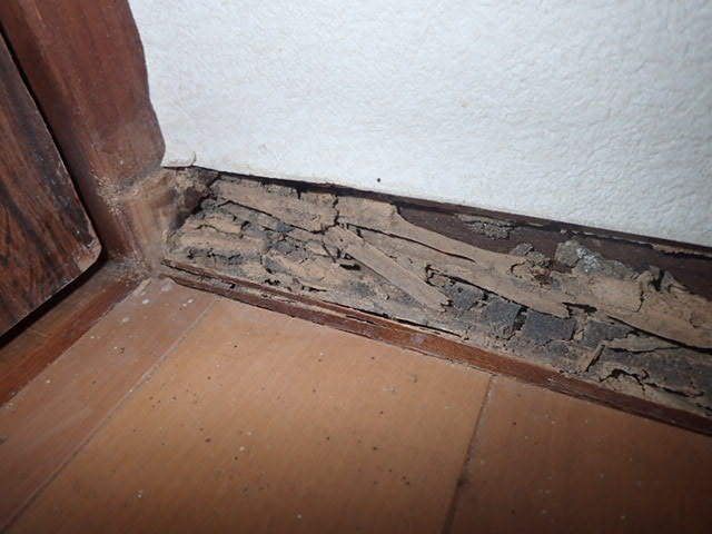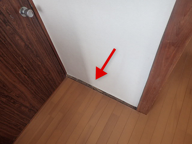 実際にお伺いすると、たしかに室内の巾木にシロアリの食害が見られました。