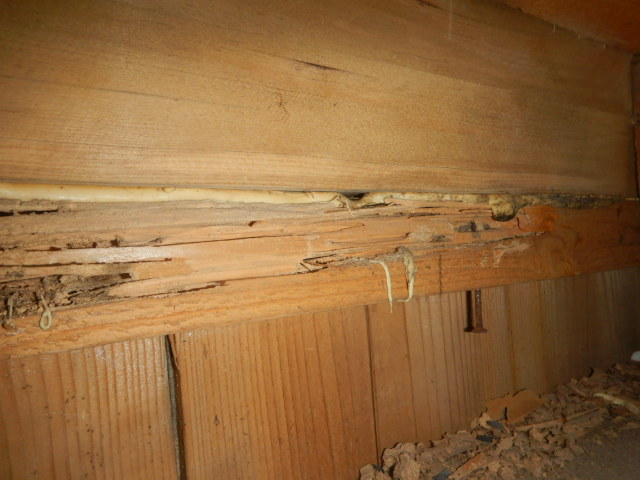 現地で床下点検を実施したところ、シロアリに食害されたあとが残っていました。