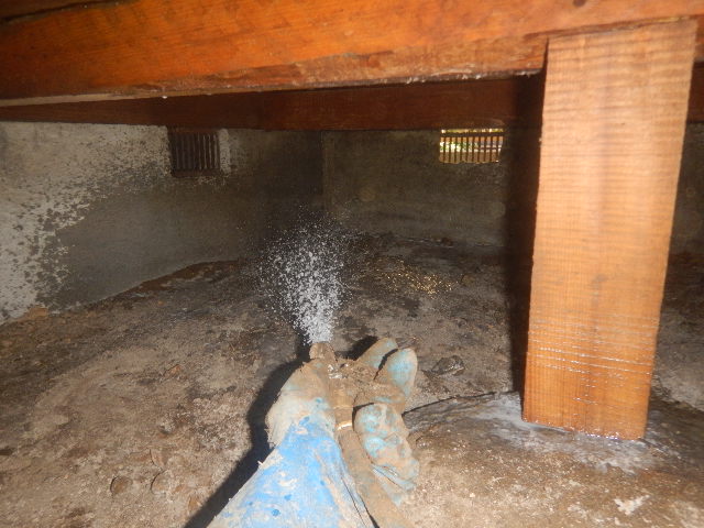 工事はシロアリ1番!スタンダードプランでご依頼いただき、床下全面に薬剤処理を行い、被害が確認できた木部には穿孔注入処理で内部まで薬剤が届くように対応しました。