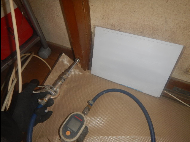 ただし、この状態では「被害がどの程度広がっているか」「どこまで処理が必要か」を正確に判断できません。そこで、増築部に点検口を作成していただいたうえで、2回目の点検に伺いました。