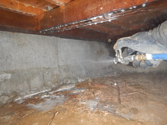 まず、床下全体に対して薬剤処理を行います。被害のあった木部へは注入処理を行い、内部に薬剤を行き渡らせます。また土壌面全面に薬剤を散布することで、シロアリの再侵入を防ぎます。