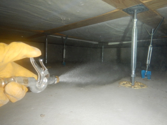 床下全体の木部および土壌に対して薬剤処理し、建物をシロアリから守るためのバリアを形成しています。