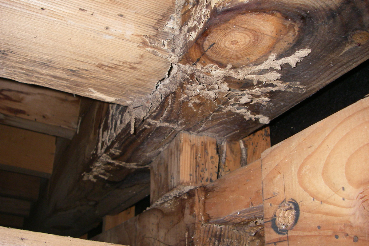 地中から蟻道を伸ばして住宅の木材に到達したシロアリは、継ぎ目や木口面から内部に入り込みます。入り込んだあとも度々木材表面に蟻土を作り、表面を這うように蟻道を伸ばして進むことがあります。