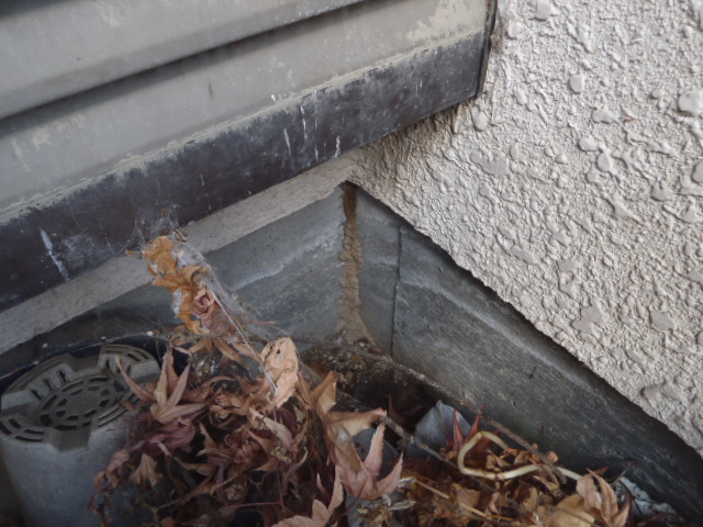 環境が整っていると基礎の外側に蟻道を伸ばしてシロアリが侵入することがあります。写真のように建物の入隅に作られることが多いのでしっかり確認しましょう。 - ポイント2.敷地にシロアリが生息していないか
