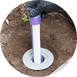 建物の外周に一定間隔でベイト剤入りの専用容器(ステーション)を埋め込み、シロアリ防除を開始します。